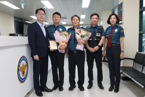 [½Åµ¿¾Æ¹æ¼Û=ÀÌÀçö±âÀÚ] È­¼ºÆ¯·Ê½Ã(½ÃÀå Á¤¸í±Ù)´Â 17ÀÏ, ±Ø´ÜÀû ¼±ÅÃÀ» ½ÃµµÇÑ ½Ã¹ÎÀ» ½Å¼ÓÈ÷ ±¸Á¶ÇØ ¼ÒÁßÇÑ »ý¸íÀ» ÁöŲ °ø·Î·Î È­¼ºµ¿Åº°æÂû¼­ µ¿ÅºÁö±¸´ë¿¡ ½ÃÀå ¸íÀÇÀÇ °¨»çÆÐ¸¦ ¼ö¿©Çϰí, ±¸Á¶¿¡ Á÷Á¢ ³ª¼± ¼øÂû1ÆÀ¿¡´Â ǥâÀåÀ» Àü´ÞÇß´Ù. À̹ø ¼ö¿©½ÄÀº À§¡¦