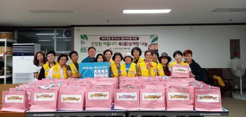 [½Åµ¿¾Æ¹æ¼Û °æ³²ÇÔ¾È=À̽ŵ¿±âÀÚ] ÇԾȱº »êÀθé Àû½ÊÀÚºÀ»çȸ´Â Áö³­ 25ÀÏ Áߺ¹À» ¸Â¾Æ °ü³» Ãë¾à°èÃþ 100¸í ¹× °øÀ¯³ÃÀå°í ÀÌ¿ëÀÚ¸¦ ´ë»óÀ¸·Î ¡®°Ç°­ÇÑ ¿©¸§³ª±â º¹(ÜØ)»ï°èÅÁ ³ª´®¡¯ Çà»ç¸¦ ÆîÃÆ´Ù. À̳¯ ºÀ»çȸ¿øµéÀº Á¤¼º²¯ ÁغñÇÑ »ï°èÅÁÀ» Á÷Á¢ Àü´ÞÇÏ¸ç ¹«¡¦