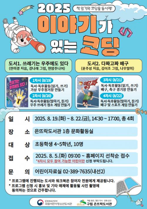 [½Åµ¿¾Æ¹æ¼Û ÀºÆò±¸=À̽ŵ¿±âÀÚ] ¼­¿ï ÀºÆò±¸´Â ±¸¸³ Àº¶ß¶ôµµ¼­°ü¿¡¼­ ±¹¸³¾î¸°ÀÌû¼Ò³âµµ¼­°üÀÌ ÁÖÃÖÇÏ´Â ¡¯À̾߱Ⱑ ÀÖ´Â ÄÚµù¡® °ø¸ð»ç¾÷¿¡ ¼±Á¤µÅ ÃʵîÇлýÀ» ´ë»óÀ¸·Î µ¶¼­ ¿¬°èÇü ÄÚµù ¼ö¾÷À» ¿î¿µÇÑ´Ù°í ¹àÇû´Ù. ¡¯À̾߱Ⱑ ÀÖ´Â ÄÚµù¡®Àº µ¶¼­¿Í ¼ÒÇÁÆ®¿þ¾î¡¦