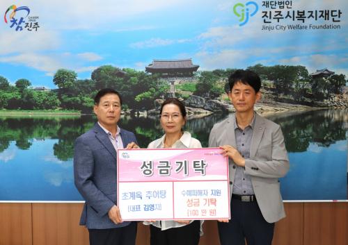 Ãʰè¿Á Ãß¾îÅÁ ±è¿µÀÚ ´ëÇ¥, ÁøÁֽú¹ÁöÀç´Ü¿¡ ¼º±Ý 100¸¸ ¿ø ±âŹ