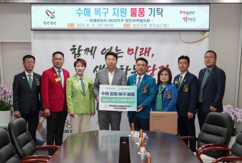 [½Åµ¿¾Æ¹æ¼Û=ÀÌÀçö±âÀÚ] ±¹Á¦·ÎŸ¸® 3620Áö±¸ ´çÁøÁö¿ªÇùÀÇȸ(Áö¿ª´ëÇ¥ ¹Ú¼øÃµ)´Â 12ÀÏ ´çÁø½Ãû¿¡¼­ ¼öÇØ ÇÇÇØ ÁֹεéÀ» µ½±â À§ÇØ 900¸¸ ¿ø »ó´çÀÇ ¹°Ç°À» ±âŹÇß´Ù. À̹ø¿¡ Àü´ÞµÈ ¹°Ç°Àº Á¦½À±â 5´ë¿Í Àü±â¹ä¼Ü 25´ë·Î, ÁýÁßÈ£¿ì·Î ÁְŠȯ°æÀÌ ¾ÇÈ­µÈ °¡±¸ÀÇ »ý¡¦