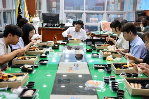 [½Åµ¿¾Æ¹æ¼Û Àü³²°íÈï=¹Ú±¤¿Á±âÀÚ] °íÈﱺ(±º¼ö °ø¿µ¹Î)ÀÌ Á¡½É½Ã°£À» Ȱ¿ëÇØ Á÷¿ø°úÀÇ ¼ÒÅëÀ» À§ÇÑ °í¹ÎÀº ³ª´©°í ¼ÒÅëÀº ´Ã¸®´Â¡®°í¼ÒÇÑ ¸¸³²¡¯À» ¿î¿µÇÏ¸ç ¼öÆòÀûÀÎ Á¶Á÷¹®È­ È®»ê¿¡ ³ª¼­°í ÀÖ´Ù°í 12ÀÏ ¹àÇû´Ù. ¡®°í¼ÒÇÑ ¸¸³²¡¯Àº 7±Þ ÀÌÇÏ 10¸í ³»¿ÜÀÇ ¼Ò±Ô¸ð ±×¡¦