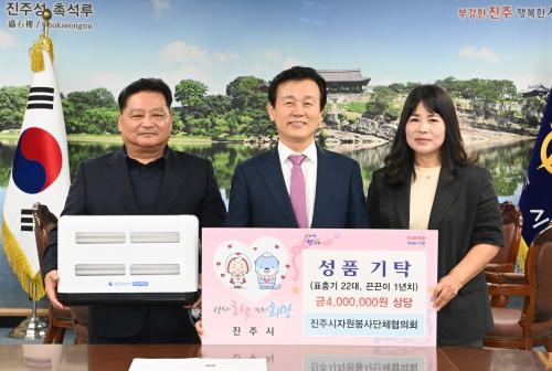 [½Åµ¿¾Æ¹æ¼Û °æ³²ÁøÁÖ=³²±Ã¿µ±â±âÀÚ] ÁøÁֽô 12ÀÏ ÀÌÀ±¹Ì ¢ßº¸°Çȯ°æ ´ëÇ¥°¡ ÁøÁÖ½ÃÀÚ¿øºÀ»ç´ÜüÇùÀÇȸ¸¦ ÅëÇØ Æ÷Ãæ±â 22´ë¿Í Æ÷Ãæ±â ²ö²öÀÌ 1³â Ä¡ µî ½Ã°¡ ¾à 400¸¸ ¿ø »ó´çÀÇ ¹°Ç°À» ÁöÁ¤ ±âŹÇß´Ù°í ¹àÇû´Ù. À̳¯ ±âʽÄÀº ÁøÁÖ½Ãû¿¡¼­ ¿­·ÈÀ¸¸ç, ÇØ´ç ¹°Ç°Àº¡¦