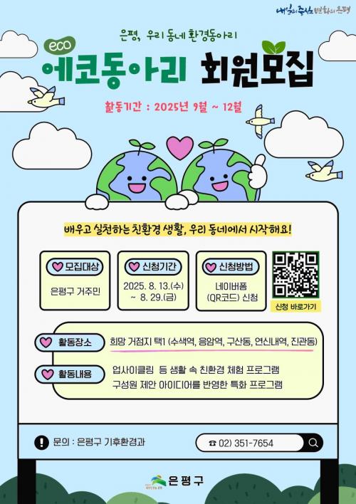 [½Åµ¿¾Æ¹æ¼Û ÀºÆò±¸=À̽ŵ¿±âÀÚ] ¼­¿ï ÀºÆò±¸´Â ¿À´Â 29ÀϱîÁö ¿¡ÄÚ¹è¿òÅ͸¦ Áß½ÉÀ¸·Î »ýȰ ¼Ó ȯ°æ ½ÇõÀ» ÀÌ¾î ³ª°¥ ¡®¿¡ÄÚµ¿¾Æ¸®¡¯ ½Å±Ô ȸ¿øÀ» ¸ðÁýÇÑ´Ù°í ¹àÇû´Ù. ¡®¿¡ÄÚ¹è¿òÅÍ¡¯´Â ÁֹεéÀÌ °¡±î¿î °Å¸®¿¡¼­ ȯ°æÀ» ¹è¿ì°í üÇèÇϸç, ÇÔ²² ½ÇõÇÒ ¼ö ÀÖµµ·Ï ´Ù¡¦