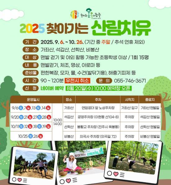 [½Åµ¿¾Æ¹æ¼Û °æ³²ÁøÁÖ=³²±Ã¿µ±â±âÀÚ] ÁøÁֽð¡ ¿À´Â 9¿ùºÎÅÍ 10¿ù±îÁö ½Ã¹ÎµéÀÌ µµ½É ¼Ó¿¡¼­ °Ç°­°ú Èú¸µ µî Àϼ®ÀÌÁ¶ÀÇ È¿°ú¸¦ ´©¸± ¼ö ÀÖ´Â ¡®Ã£¾Æ°¡´Â »ê¸²Ä¡À¯¡¯ ÇÁ·Î±×·¥À» ¿î¿µÅ°·Î ÇØ °ü½ÉÀ» ¸ðÀ¸°í ÀÖ´Ù. ÀÌ ÇÁ·Î±×·¥Àº Áö¿ª³» µµ½Ã ½£¿¡ Á¶¼ºµÈ ¡®È²Åä ¸Ç¹ß¡¦