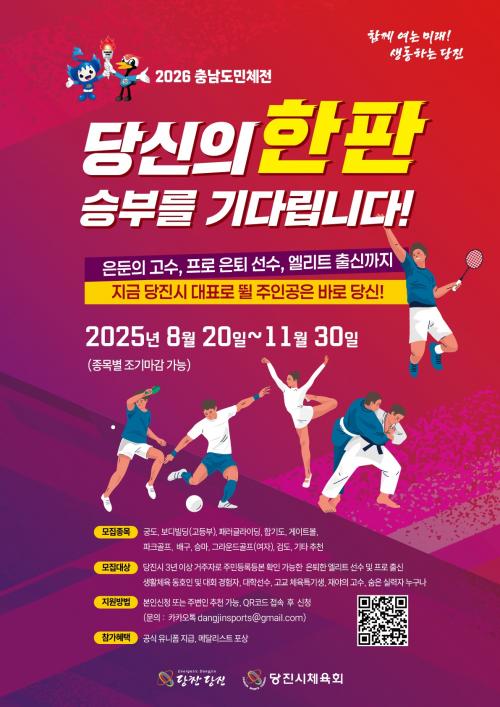 [½Åµ¿¾Æ¹æ¼Û=ÀÌÀçö±âÀÚ] ´çÁø½ÃüÀ°È¸(ȸÀå ¹éÁ¾¼®)´Â ¿À´Â 2026³â ´çÁø¿¡¼­ ¿­¸®´Â ÃæÃ»³²µµ¹ÎüÀ°´ëȸ¸¦ ¾ÕµÎ°í, Áö¿ª ³» ¼ûÀº üÀ° ÀÎÀ縦 ã±â À§ÇÑ ´çÁø½Ã¡®¼ûÀº °í¼ö ã±â ÇÁ·ÎÁ§Æ®¡¯¸¦ º»°Ý ÃßÁøÇÑ´Ù. À̹ø ÇÁ·ÎÁ§Æ®´Â ¡ãÀºµÐÀÇ °í¼ö ¡ãÇÁ·Î ÀºÅð ¼±¼ö ¡ã¿¤¸®¡¦