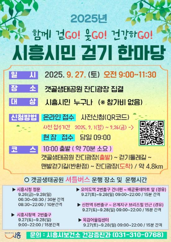[½Åµ¿¾Æ¹æ¼Û ½ÃÈï½Ã=À̽ŵ¿±âÀÚ] ½ÃÈï½Ã´Â ½Ã¹ÎÀÇ °Ç°­ÇÑ »ýȰ ½À°ü È®»ê°ú Ȱ±âÂù Áö¿ª °øµ¿Ã¼ Á¶¼ºÀ» À§ÇØ ¿À´Â 9¿ù 27ÀÏ ¿ÀÀü 9½Ã, °¹°ñ»ýŰø¿ø Àܵð±¤Àå¿¡¼­ ¡®2025³â Á¦3ȸ ½ÃÈï½Ã¹Î °È±â ÇѸ¶´ç¡¯À» °³ÃÖÇÑ´Ù. ¿ÃÇØ °È±â ÇѸ¶´çÀº Áö³­ 5¿ù°ú 6¿ù µÎ Â÷·Ê ¼ºÈ²¡¦