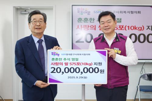 [½Åµ¿¾Æ¹æ¼Û µ¿´ë¹®±¸=À̽ŵ¿±âÀÚ] ¼­¿ï µ¿´ë¹®±¸´Â ¹ÎÁ· ´ë¸íÀý Ãß¼®À» ¾ÕµÐ 29ÀÏ µ¿´ë¹®±¸»çȸº¹ÁöÇùÀÇȸ·ÎºÎÅÍ 10kg »óÁÖ »ï¹é½Ò 500Æ÷(ȯ°¡¾× 2000¸¸ ¿ø »ó´ç)¸¦ ±âŹ¹Þ¾Ò´Ù°í ¹àÇû´Ù. »çȸº¹ÁöÇùÀÇȸ´Â Áö³­ 2005³âºÎÅÍ ¸Å³â ¼³°ú Ãß¼® ¸íÀý¸¶´Ù ¡®»ç¶ûÀÇ ½Ò ³ª¡¦