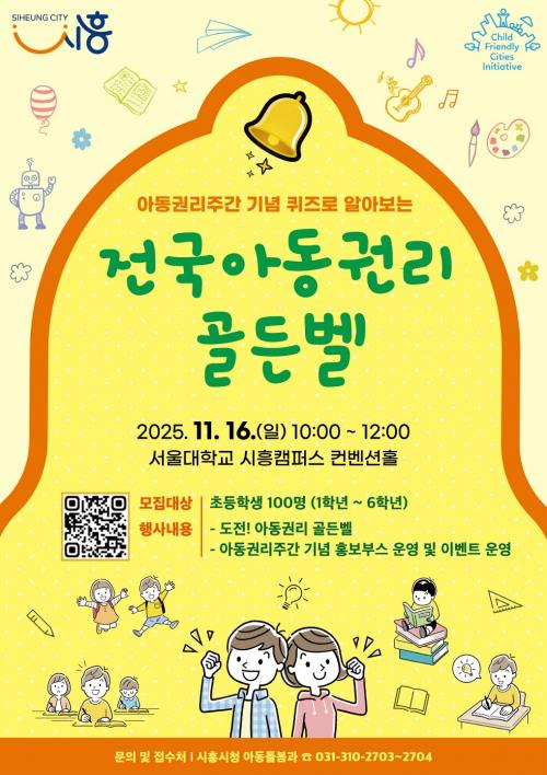 [½Åµ¿¾Æ¹æ¼Û ½ÃÈï½Ã=À̽ŵ¿±âÀÚ] ½ÃÈï½Ã´Â ¿À´Â 11¿ù 16ÀÏ ¿ÀÀü 10½Ã, ¼­¿ï´ëÇб³ ½ÃÈïÄ·ÆÛ½º ÄÁº¥¼ÇȦ¿¡¼­ ¿­¸®´Â ¡®ÄûÁî·Î ¾Ë¾Æº¸´Â Àü±¹ ¾Æµ¿±Ç¸® °ñµçº§¡¯¿¡ Âü°¡ÇÒ ÃʵîÇлýÀ» 10¿ù 31ÀϱîÁö ¸ðÁýÇÑ´Ù. À̹ø Çà»ç´Â ¾Æµ¿±Ç¸®ÁÖ°£ ±â³äÇà»ç Áß Çϳª·Î, ¾Æµ¿ÀÌ ´É¡¦