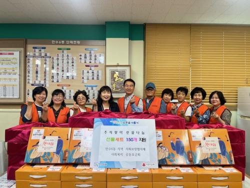[½Åµ¿¾Æ¹æ¼Û ÀÎõ=À±¹Î½Ä±âÀÚ]ÀÎõ½Ã ³²µ¿±¸ ¸¸¼ö6µ¿ Áö¿ª»çȸº¸ÀåÇùÀÇü(À§¿øÀå ÀÌÀçºÀ)´Â Ãß¼® ¸íÀýÀ» ¸Â¾Æ Ãë¾à°¡±¸ 150¼¼´ë¿¡ ÂüÄ¡ ÇÜ ¼¼Æ®¿Í °úÀÏ»óÀÚ¸¦ Àü´ÞÇß´Ù°í 10ÀÏ ¹àÇû´Ù. À̹ø¿¡ Àü´ÞÇÑ ÂüÄ¡ ÇÜ ¼¼Æ®¿Í °úÀÏ»óÀÚ´Â ¸¸¼ö6µ¿ Áö¿ª»çȸº¸ÀåÇùÀÇü ¿¬°£°è¡¦