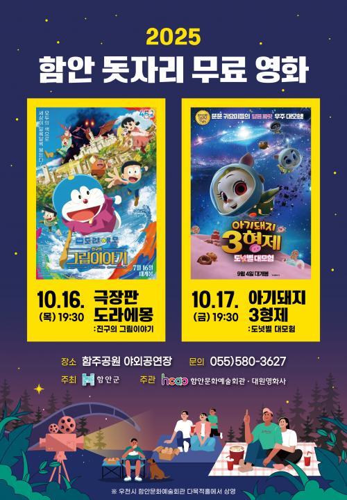 [½Åµ¿¾Æ¹æ¼Û °æ³²ÇÔ¾È=À̽ŵ¿±âÀÚ] ÇԾȹ®È­¿¹¼úȸ°üÀº ±º¹Î¿¡°Ô ¿µ»ó¹®È­¸¦ Áñ±æ ±âȸ¸¦ Á¦°øÇϱâ À§ÇØ 10¿ù 16Àϰú 17ÀÏ ¿ÀÈÄ 7½Ã 30ºÐ ÇÔÁÖ°ø¿ø ¾ß¿Ü°ø¿¬Àå¿¡¼­ ¡®ÇÔ¾È µ¾ÀÚ¸® ¹«·á¿µÈ­¡¯¸¦ ¿î¿µÇÑ´Ù°í ¹àÇû´Ù. ù³¯ »ó¿µÀÛ ¡®±ØÀåÆÇ µµ¶ó¿¡¸ù: Áø±¸ÀÇ ±×¸²À̾߱⡦