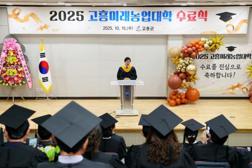 [½Åµ¿¾Æ¹æ¼Û °íÈï=¹Ú±¤¿Á±âÀÚ]°íÈﱺ(±º¼ö °ø¿µ¹Î)Àº 15ÀÏ ³ó¾÷±â¼ú¼¾ÅÍ ´ë±³À°Àå¿¡¼­ ¡®2025³âµµ °íÈï¹Ì·¡³ó¾÷´ëÇÐ ¼ö·á½Ä¡¯À» °³ÃÖÇϰí, Áö¿ª ³ó¾÷ÀÇ ¹Ì·¡¸¦ ¼±µµÇÒ Àü¹®³ó¾÷ÀÎ 36¸íÀ» ¹èÃâÇß´Ù. À̳¯ ¼ö·á½Ä¿¡´Â °ø¿µ¹Î ±º¼ö¸¦ ºñ·ÔÇØ Çлç¿î¿µÀ§¿ø, °ü°è °ø¹«¿ø ¡¦