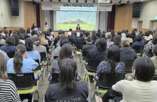 [½Åµ¿¾Æ¹æ¼Û °æ³²±èÇØ=³²±Ã¿µ±â±âÀÚ] ±èÇØ½Ã´Â 21ÀÏ Áß¼Ò±â¾÷ºñÁî´Ï½º¼¾ÅÍ¿¡¼­ ¾î¸°ÀÌÁý Çкθð 350¿©¸íÀÌ Âü¼®ÇÑ °¡¿îµ¥ ¡®³» ¾ÆÀÌ ¹Ù·Î ¾Ë°í ¾çÀ°Çϱ⡯ ÁÖÁ¦ÀÇ ºÎ¸ð±³À°À» ½Ç½ÃÇß´Ù. ±³À°Àº ±èÇØ½Ã¾î¸°ÀÌÁý¿¬ÇÕȸ ÁÖ°üÀ¸·Î ÆòÈ­¸¦ ¸¸µå´Â Çб³ À嵿Çö ´ëÇ¥°¡ °­¿¬¡¦