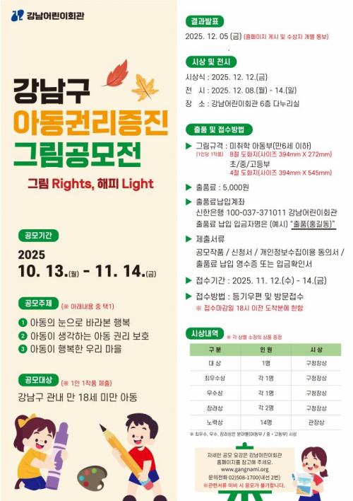 [½Åµ¿¾Æ¹æ¼Û °­³²±¸=À̽ŵ¿±âÀÚ] ²ÞÀÌ ¸ðÀÌ´Â µµ½Ã, ¹Ì·¡¸¦ ±×¸®´Â °­³²±¸°¡ ¼¼°è ¾Æµ¿ÀÇ ³¯(11¿ù 20ÀÏ)À» ±â³äÇØ 18¼¼ ¹Ì¸¸ ¾î¸°ÀÌ¿Í Ã»¼Ò³âÀ» ´ë»óÀ¸·Î ¡®2025³â °­³²±¸ ¾Æµ¿±Ç¸®ÁõÁø ±×¸² °ø¸ðÀü¡¯À» °³ÃÖÇÑ´Ù. À̹ø °ø¸ðÀüÀº ¾Æµ¿°ú û¼Ò³âÀÌ ±×¸²À̶ó´Â âÀÇÀû¡¦