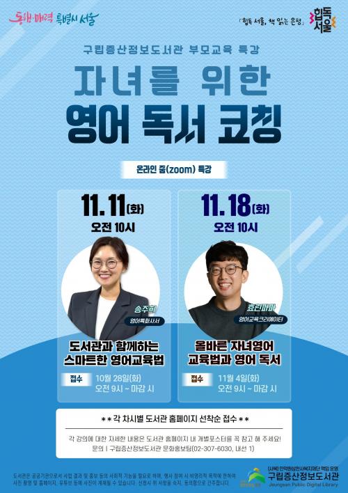 [½Åµ¿¾Æ¹æ¼Û ÀºÆò±¸=À̽ŵ¿±âÀÚ] ¼­¿ï ÀºÆò±¸´Â ±¸¸³Áõ»êÁ¤º¸µµ¼­°üÀÌ ÀÚ³àÀÇ ¿µ¾î±³À°¿¡ °ü½É ÀÖ´Â ÃʵîÇлý Çкθ𸦠´ë»óÀ¸·Î ¿µ¾î µ¶¼­ ±³À° Ư°­ ¡®Àڳฦ À§ÇÑ ¿µ¾î µ¶¼­ ÄÚĪ¡¯À» ¿î¿µÇÑ´Ù°í ¹àÇû´Ù. À̹ø Ư°­Àº ¡®Èüµ¶ ¼­¿ï, Ã¥ Àд ÀºÆò¡¯ÀÇ ÀÏȯÀ¸·Î ¿À¡¦