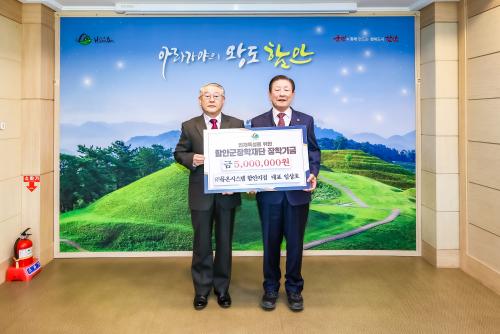 [½Åµ¿¾Æ¹æ¼Û °æ³²ÇÔ¾È=À̽ŵ¿±âÀÚ] ÇԾȱºÀåÇÐÀç´ÜÀº ¢ß¹Â¿Â½Ã½ºÅÛ ÇÔ¾ÈÁöÁ¡ÀÌ 5ÀÏ ÀåÇбâ±Ý 500¸¸ ¿øÀ» ±âŹÇß´Ù°í ¹àÇû´Ù. ±âŹ½Ä¿¡´Â ÀÓ»óÈ£ ´ëÇ¥°¡ Âü¼®ÇØ Áö¿ª ±³À° ¹ßÀü°ú ÀÎÀç ¾ç¼ºÀ» ¹Ù¶ó´Â ¶æÀ» ÀüÇϸç ÇԾȱºÀåÇÐÀç´Ü ÀÌ»çÀå Á¶±ÙÁ¦ ±º¼ö¿¡°Ô ÀåÇбâ±ÝÀ» ¡¦