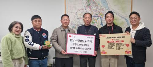 [½Åµ¿¾Æ¹æ¼Û Çϳ²½Ã=À̽ŵ¿±âÀÚ] Çϳ²½Ã´Â Áö³­ 5ÀÏ, ·Ôµ¥Ä¥¼ºÀ½·á¢ß °­µ¿ÁöÁ¡ÀÌ ¡®Çϳ² »ç¶ûäñ³ª´®¡¯¼º±ÝÀ¸·Î 300¸¸¿øÀ» Çϳ²½Ã¿¡ ±âŹÇß´Ù°í ¹àÇû´Ù. À̳¯ ±âŹ½Ä¿¡´Â ÀÌÇöÀç Çϳ²½ÃÀåÀ» ºñ·ÔÇÏ¿© À±°æÅà ÁöÁ¡Àå, ¹ÝÁؼº, ¾ç¿ì¼®, ±èÈïÀç ´ã´çÀÚ°¡ ÇÔ²² Âü¼®Çß´Ù¡¦