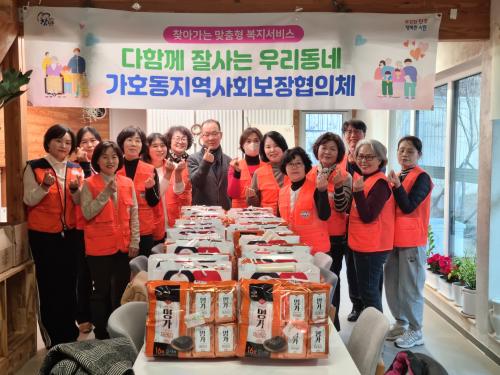 [½Åµ¿¾Æ¹æ¼Û °æ³²ÁøÁÖ=³²±Ã¿µ±â±âÀÚ] ÁøÁֽà °¡È£µ¿ Áö¿ª»çȸº¸ÀåÇùÀÇü´Â 17ÀÏ ¿¬¸»À» ¸Â¾Æ °ü³» Àú¼Òµæ 20°¡±¸¸¦ ´ë»óÀ¸·Î µû¶æÇÑ ¸Ô°Å¸®¸¦ Àü´ÞÇÏ¸ç ³ª´®À» ½ÇõÇß´Ù. À̹ø ³ª´®Àº °Ü¿ïö Ãë¾à°èÃþÀÇ °Ç°­ÇÑ ½Ä»ýȰÀ» µ½°í Áö¿ª ³» ³ª´® ¹®È­¸¦ È®»êÇϱâ À§ÇÑ °ÍÀ¸¡¦