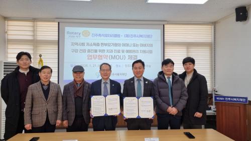 [½Åµ¿¾Æ¹æ¼Û °æ³²ÁøÁÖ=³²±Ã¿µ±â±âÀÚ] ÁøÁֽú¹ÁöÀç´ÜÀº 21ÀÏ ÁøÁֽú¹ÁöÀç´Ü¿¡¼­ ±¹Á¦·ÎŸ¸® 3590Áö±¸ ÁøÁÖÃ˼®·ÎŸ¸®Å¬·´°ú Àú¼Òµæ ÇѺθ𠰡Á¤ÀÇ ±¸°­ °Ç°­ ÁõÁøÀ» À§ÇÑ ¾÷¹«Çù¾à(MOU)À» ü°áÇß´Ù. À̹ø Çù¾àÀº Áö¿ª»çȸ Àú¼Òµæ ÇѺθ𠰡Á¤À» ´ë»óÀ¸·Î Ä¡°ú Áø·á ¡¦