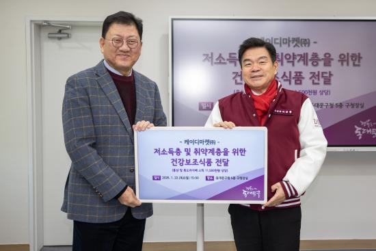 [½Åµ¿¾Æ¹æ¼Û µ¿´ë¹®±¸=À̽ŵ¿±âÀÚ] µ¿´ë¹®±¸´Â 22ÀÏ ¿ÀÈÄ 3½Ã ÄÉÀ̵ð¸¶ÄÏ ÁÖ½Äȸ»ç°¡ Àú¼ÒµæÃþ ¹× Ãë¾à°èÃþÀ» À§ÇÑ 1,150¸¸ ¿ø »ó´çÀÇ °Ç°­±â´É½Äǰ 500¼¼Æ®¸¦ ±âŹÇß´Ù°í ¹àÇû´Ù. µ¿´ë¹®±¸Ã» 5Ãþ ±¸Ã»Àå½Ç¿¡¼­ ¿­¸° ±âŹ½Ä¿¡´Â ÀÌÇÊÇü µ¿´ë¹®±¸Ã»Àå, ÄÉÀ̵ð¸¶ÄÏ Áֽġ¦