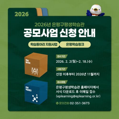 ¡®½Ã¹ÎÀÌ ÇÔ²² ¸¸µé¾î °¥ ±æ¡¯¡¦ 2026³â ÀºÆò±¸Æò»ýÇнÀ°ü °ø¸ð»ç¾÷ Á¦¾ÈÀÚ ¸ðÁý