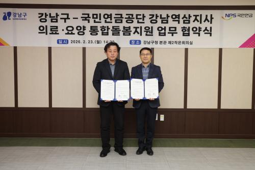 [½Åµ¿¾Æ¹æ¼Û °­³²±¸=À̽ŵ¿±âÀÚ] ²ÞÀÌ ¸ðÀÌ´Â µµ½Ã, ¹Ì·¡¸¦ ±×¸®´Â °­³²±¸°¡ 2¿ù 23ÀÏ ±¸Ã»¿¡¼­ ±¹¹Î¿¬±Ý°ø´Ü °­³²¿ª»ïÁö»ç(Áö»çÀå ½ÅÀÇö)¿Í ¡®ÀǷᡤ¿ä¾ç ÅëÇÕµ¹º½»ç¾÷ÀÇ ¿øÈ°ÇÑ ÃßÁøÀ» À§ÇÑ ¾÷¹«Çù¾à(MOU)¡¯À» ü°áÇß´Ù. À̹ø Çù¾àÀº 3¿ù 27ÀÏ ¡¸ÀǷᡤ¿ä¾ç µî Áö¡¦