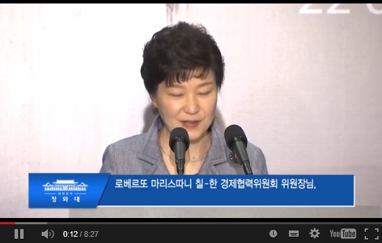 ¹Ú±ÙÇý ´ëÅë·ÉÀÌ ÇÑ-Ä¥·¹ ºñÁî´Ï½º Æ÷·³¿¡ Âü¼®ÇØ 'ÇÑ ¼ÕÀ¸·Î´Â ´Ù¸¥ ¼ÕÀ» ¾ÄÁö¸¸ ¾ç¼ÕÀ¸·Î´Â ¾ó±¼À» ¾Ä´Â´Ù'´Â Ä¥·¹ ¼Ó´ãÀ» ÀοëÇÏ¸ç ¾ç±¹ °æÁ¦ÀεéÀÇ ÆÄÆ®³Ê½ÊÀ» °Á¶Çß½À´Ï´Ù!