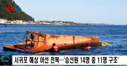[½Åµ¿¾Æ¹æ¼Û´º½º=À̼öÁ¤ ±âÀÚ] Á¦ÁÖ ¸¶¶óµµ ³²¼­ÂÊ ÇØ»ó¿¡¼­ ¼±¿ø 14¸íÀÌ Åº ¹®¾î´ÜÁö ¾î¼±ÀÌ Ä§¸ôÇß´Ù. ÇØ°æÀº ±¸Á¶¿¡ ³ª¼­ ħ¸ô ¼±¹ÚÀÇ ±¸¸í¹ú¿¡¼­ 11¸íÀ» ¹ß°ß, ±¸Á¶Çß½À´Ï´Ù.