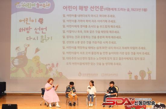 µµ¼ºÈÆ ±³À°°¨Àº ¡°À۳⿡´Â ¾î¸°ÀÌ ÇØ¹æ¼±¾ð 100ÁÖ³âÀ» ¸Â¾Æ ÀÎõ½Ã±³À°Ã»¿¡¼ ¾î¸°ÀÌ Ã»¼Ò³â ÆòÈÀ뱂 5´ë ¼±¾ðÀ» ¹ßÇ¥Çß°í, ¿ÃÇØ´Â âÀÛµ¿¿ä 100ÁÖ³âÀ» ±â³äÇØ Àü±¹ µ¿½Ã Áþ±â »ç¾÷À» ÁøÇàÇß´Ù¡±¸ç ¡°100³â Àü À±±Ø¿µ, ¹æÁ¤È¯ ¼±»ý´ÔÀÌ ¹ÎÁ·¾Ö°¡ ´ã±ä ¾î¸°À̵éÀÇ µ¿½Ã¿¡ À½·üÀ» ¾ñ¾î µ¿¿ä¸¦ ¸¸µé¾úµí, À̹ø µ¿½Ã´ëȸÀÇ ¿ì¼ö ÀÛǰÀ» ¼±º°ÇØ ¾î¸°À̵éÀÌ ºÎ¸¦ ¼ö ÀÖ°Ô Çϰڴ١±°í ¸»Çß´Ù.