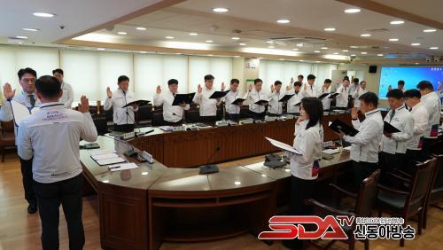 À̳¯ Çà»ç¿¡¼ °»óö ¾ÈÀüº¹Áö°úÀå(¹Ú¶÷ȸ ¾ÈÀü°ü¸®´ÜÀå)Àº °£ºÎµéÀ» ´ëÇ¥ÇØ ¾ÈÀü ¼±¼¸¦ Çϰí, °¢ ½Ç¡¤°úÀåµéÀº °¢ÀÚÀÇ ¼¸íÀ» ´ãÀº ¾ÈÀü¼¾à¼¸¦ ÁغñÀ§¿øÀå¿¡°Ô Àü´ÞÇß´Ù.
