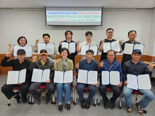 [½Åµ¿¾Æ¹æ¼Û=ÀÌÀçö ±âÀÚ] ´çÁø½Ã³óÃÌÁöµµÀÚ¿¬ÇÕȸ(ȸÀå ¾çÀÇÇ¥)¿¡¼­´Â 10ÀÏ ³óÃÌÁöµµÀÚȸ¿ø(¸àÅä)°ú ¸¶À»ÀÇ Ã»³â³ó¾÷ÀÎ(¸àƼ) °£ÀÇ ¿µ³ó½Â°è ÈÄ¿ø°á¿¬ ¸àÅ丵 »ç¾÷À» À§ÇÑ Çù¾à½ÄÀ» °³ÃÖÇß´Ù. ³óÃÌÁöµµÀÚ¿¬ÇÕȸ´Â È­ÈÑ, ¸Þ·Ð, º­, ¾çµ·, ¿°¼Ò 5°³ ÀÛ¸ñ¿¡ ´ëÇØ ¸àÅä-¸àƼ(12¸í)¸¦ ¼±Á¤Çß´Ù.