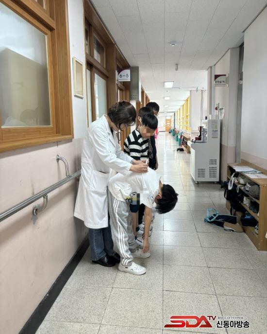 °£È£»ç°¡ Çб³·Î ¹æ¹®ÇÏ¿© ¹Ù¸¥ ÀÚ¼¼ ±³À°°ú µî½É´ë °Ë»ç¸¦ ½Ç½ÃÇϰí, ôÃß°¡ 5µµ ÀÌ»ó ÈÖ¾îÁø ÇлýµéÀ» ¼±º°ÇÏ¿© À̵¿°ËÁøÂ÷·®¿¡¼ X-ray ÃÔ¿µÀ» ÇÏ°Ô µÈ´Ù. ±× °á°ú Áø·á°¡ ÇÊ¿äÇÑ ¹üÀ§ÀÇ À¯¼Ò°ßÀÚ¿¡°Ô´Â ¿Â¶óÀÎ Áø·á »ó´ãÀ» Á¦°øÇÏ¿© ÃßÈÄ °ü¸®±îÁö ÁøÇàµÈ´Ù.