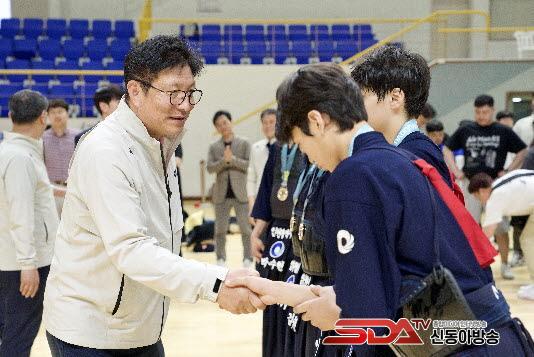 ÀÌÈÄ¿¡´Â À°»ó°æ±â°¡ ÁøÇà ÁßÀÎ ¸ñÆ÷Á¾ÇÕ°æ±âÀåÀ» ã¾Æ Çлý¼±¼ö´ÜÀ» °Ý·ÁÇß´Ù. ¶§¸¶Ä§ °Ý·Á ÇöÀå¿¡¼ ÀÎõºÀ¼öÃʵîÇб³ 6Çгâ õÀç¿ø ¼±¼ö°¡ ³²ÃÊ Æ÷ȯ´øÁö±â¿¡¼ ±Ý¸Þ´ÞÀ» ȹµæÇØ µµ ±³À°°¨ÀÌ Á÷Á¢ ½Ã»ó½Ä¿¡ Âü¿©, õÀç¿ø Çлý¿¡°Ô ±Ý¸Þ´ÞÀ» ¼ö¿©Çϱ⵵ Çß´Ù.
