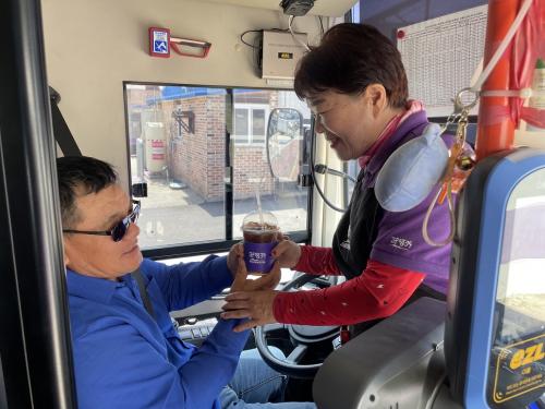 ƯÈ÷ 2³â µ¿¾È ¸ÅÀÏ Ä«Æä ¾Õ °ø¿µ¹ö½º ½Â°Àå¿¡¼ ¼Õ´ÔÀ» ¸Â´Â ¿îÀü±â»çµé¿¡°Ô ¹«·á·Î Ä¿ÇÇ¿Í °£½ÄÀ» Á¦°øÇÏ¸ç ±×µéÀÇ ³ë°í¸¦ °Ý·ÁÇÏ¿© ¸¹Àº »ç¶÷¿¡°Ô Ä£Àý ¼ºñ½º¸¦ Á¦°øÇÒ ¼ö ÀÖµµ·Ï ºÀ»çÇÏ´Â ÁßÀÌ´Ù.