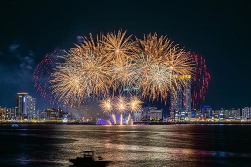 ƯÈ÷ ÁÖ °ø¿¬¿¡¼´Â ÇØ»ó¹«´ë¿¡¼ ÆîÃÄÁö´Â dz¼ºÇÑ °ø¿¬°ú ÃãÃß´Â ¹Ù´ÙºÐ¼ö°¡ ¾î¿ì·¯Á® Àå°üÀ» ºú¾î³»°í, ¸¶Áö¸·¿¡´Â È·ÁÇÑ ºÒ²É¼î°¡ 10ºÐ µ¿¾È ¹ãÇÏ´ÃÀ» ¼ö³õÀ¸¸ç ÃàÁ¦ ºÐÀ§±â¸¦ ÇѲ¯ °íÁ¶½ÃÄ×´Ù.