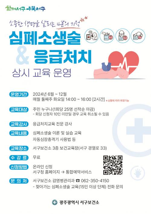 ¾Æ¿ï·¯ ¼±¸´Â 15ÀÎ ÀÌ»ó ´Üü¸¦ ´ë»óÀ¸·Î ã¾Æ°¡´Â ½ÉÆó¼Ò»ý¼ú ±³À°µµ ÇÔ²² ¿î¿µÇϰí ÀÖÀ¸¸ç, °ü·Ã »çÇ×Àº ¼±¸º¸°Ç¼Ò °¨¿°º´°ü¸®°ú·Î ¹®ÀÇÇÏ¸é µÈ´Ù.