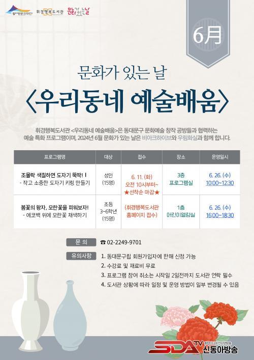 ¡®6¿ù ¹®È°¡ ÀÖ´Â ³¯¡¯ ±â³ä üÇè ÇÁ·Î±×·¥Àº 2°³·Î ¼ºÀδë»ó(15¸í) ¡®µµÀڱ⠶ҵü¡¯°ú ÃʵîÇлý´ë»ó(3~6Çгâ 15¸í) ¡®¸ð¶õ²ÉÀ» ÇÇ¿öº¸ÀÚ¡¯¸¦ 6. 26.(¼ö) ÈÖ°æÇູµµ¼°ü¿¡¼ °æÇèÇØ º¼ ¼ö ÀÖ´Ù.