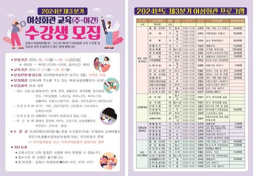 ±èÁ¦½Ã¿¡ ÁÖ¼Ò¸¦ µÐ ¿©¼ºÀº ´©±¸³ª ½Åû °¡´ÉÇÏ¸ç ¹æ¹® Á¢¼ö¸¦ ÅëÇØ ¼±Âø¼øÀ¸·Î ¸ðÁýÇÏ°í ¼ö°·á´Â 3°³¿ù¿¡ 15,000¿øÀ¸·Î ±¹¹Î±âÃÊ»ýȰ¼ö±ÞÀÚ(»ý°è.ÀÇ·á), ±¹°¡À¯°øÀÚ µîÀº ¼ö°·á°¡ ¸éÁ¦µÈ´Ù. À̹ø¿¡ ¸ðÁýµÈ ¼ö°»ýÀº 2024³â 7¿ù 1ÀϺÎÅÍ 3°³¿ù°£ ±³À°ÀÌ ÁøÇàµÈ´Ù.