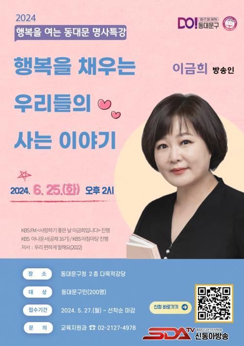ÀÌÇÊÇü µ¿´ë¹®±¸Ã»ÀåÀº ¡°À̱ÝÈñ °»ç¿ÍÀÇ ¸¸³²À» ÅëÇØ ¸»°ú ¼ÒÅëÀÇ Á߿伺À» ¹è¿ì°í ÀλýÀ» »ì¾Æ°¡´Â ÁöÇý¸¦ ¾òÀ» ¼ö ÀÖ´Â ±âȸ°¡ µÉ °ÍÀ¸·Î ±â´ëÇÑ´Ù. ¾ÕÀ¸·Îµµ °¢ ºÐ¾ßÀÇ Àú¸íÀλçµéÀ» ÃÊûÇÏ¿© ±¸¹Îµé¿¡°Ô ´Ù¾çÇÑ Áö½Ä°ú °æÇèÀ» ³ª´ ¼ö ÀÖµµ·Ï ³ë·ÂÇÒ °Í¡±À̶ó°í ¸»Çß´Ù.