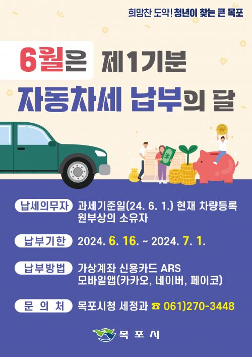 À̹ø ÀÚµ¿Â÷¼¼´Â 2024³â 6¿ù 1ÀÏ ÇöÀç ÀÚµ¿Â÷ µî·Ï¿øºÎ»ó ¼ÒÀ¯ÀÚ¿¡°Ô ºÎ°úµÇ¸ç, ¿ÃÇØ ¿¬¼¼¾× ÀÚµ¿Â÷¼¼¸¦ ¹Ì¸® ³³ºÎÇÑ Â÷·® ¹× Àå¾ÖÀÎ µî ºñ°ú¼¼¡¤°¨¸é Â÷·®Àº ºÎ°ú´ë»ó¿¡¼ Á¦¿ÜµÈ´Ù.