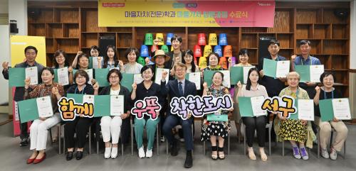 ¼ö·á½Ä¿¡ Âü¼®ÇÑ ±èÀ̰­ ¼­±¸Ã»ÀåÀº ¡°¸¶À»È°µ¿ÀÇ ¼±ÇÑ ¿µÇâ·ÂÀÌ ¡®ÂøÇѵµ½Ã ¼­±¸¡¯ÀÇ »çȸÀû °¡Ä¡ È®»êÀÇ °è±â°¡ µÇ±æ ¹Ù¶õ´Ù¡±¸ç ¡°¸¶À»ÀÇ °¡Ä¡¸¦ Ű¿ö³ª°¡´Â ¼­±¸ ¸¶À»¸®´õ·Î Ȱ¹ßÇÏ°Ô È°µ¿ÇÒ ¼ö ÀÖµµ·Ï Áö¿øÀ» ¾Æ³¢Áö ¾Ê°Ú´Ù¡±°í ¸»Çß´Ù.