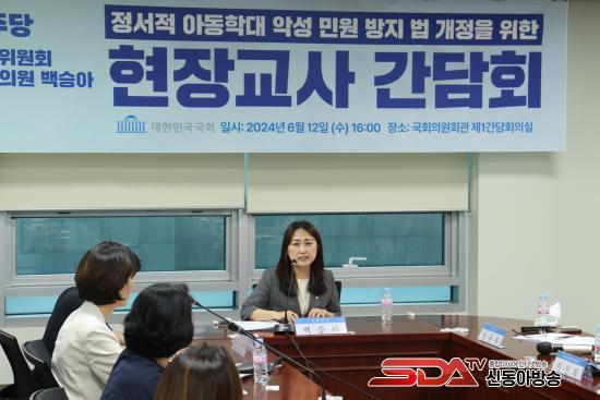 ¹é½Â¾Æ ÀÇ¿ø(´õºÒ¾î¹ÎÁÖ´ç ¿ø³»ºÎ´ëÇ¥, ±³À°À§¿øÈ¸)Àº ±³»ç³ëµ¿Á¶ÇÕ¿¬¸Í(À§¿øÀå ±è¿ë¼­, ÀÌÇÏ ±³»ç³ëÁ¶)°ú ÇÔ²² 6¿ù 12ÀÏ(¼ö) 16½Ã ±¹È¸ÀÇ¿øÈ¸°ü Á¦1°£´ãȸÀǽǿ¡¼­ ¡®¼­ÀÌÃÊÆ¯º°¹ý(°ø±³À°Á¤»óÈ­¸¦ À§ÇÑ ±³±Çȸº¹ 5¹ý) ÃßÁø°ú ÇÔ²²ÇÏ´Â Á¤¼­Àû ¾Æµ¿ÇÐ´ë ¾Ç¼º ¹Î¿ø ÇÇÇØ±³»ç °£´ãȸ¡¯¸¦ °³ÃÖÇÏ¿´´Ù. À̳¯ °£´ãȸ¿¡´Â ¹é½Â¾Æ ÀÇ¿ø°ú ±³»ç³ëÁ¶ ÁýÇàºÎ 3¸í, ±×¸®°í Á¤¼­Àû ¾Æµ¿ÇÐ´ë ½Å°í ÇÇÇØ±³»ç 8¸íÀÌ Âü¼®ÇÏ¿´´Ù.