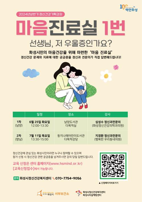 ÇÑÆí, ȼº½ÃÁ¤½Å°Ç°º¹Áö¼¾ÅÍ´Â °ü³» ´Üü, ±â¾÷ü, °ü°ø¼ µîÀ» ´ë»óÀ¸·Î ºñÁ¤±â Á¤½Å°Ç° °Áµµ ¿î¿µÇϰí ÀÖ´Ù. Á¤½Å°Ç° °ü·Ã ±³À° ½ÅûÀ» Èñ¸ÁÇÒ °æ¿ì ȼº½ÃÁ¤½Å°Ç°º¹Áö¼¾ÅÍ(¢Ï031-352-0175)·Î À¯¼± ¹®ÀÇÇÏ¸é µÈ´Ù.