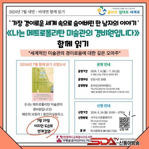 7¿ù ÇÔ²² Àб⠼±Á¤ µµ¼´Â ÆÐÆ®¸¯ ºê¸µ¸® ÀÛ°¡ÀÇ ¡®³ª´Â ¸ÞÆ®·ÎÆú¸®Åº ¹Ì¼ú°üÀÇ °æºñ¿øÀÔ´Ï´Ù¡¯ÀÌ´Ù. Âü¿©ÀÚµéÀº ³×À̹ö ¹êµå¸¦ ÅëÇØ 7¿ù 8ÀϺÎÅÍ 26ÀϱîÁö Àбâ ÁøµµÇ¥¿¡ µû¶ó µµ¼¸¦ ÇÔ²² ÀÐ°í »ý°¢°ú ´À³¦À» °øÀ¯ÇÑ´Ù. µ¶¼Àü¹®°¡°¡ ÁöµµÇϸç, 7¿ù 29ÀÏ¿¡´Â ÀÌÁö¾È µµ½¼Æ®ÀÇ ¿¬°è °¿¬ÀÌ ÁغñµÇ¾î ÀÖ´Ù.