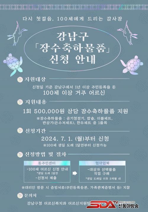 ¿ÃÇØ ´ë»óÀÚ´Â ÃÑ 95¸íÀ¸·Î 100¼¼ ÀÌ»ó 63¸í, ¿ÃÇØ ¿¬¸» ±âÁØ 100¼¼°¡ µÇ´Â 32¸íÀ» ¸ðµÎ Æ÷ÇÔÇÑ´Ù. ´ë»óÀÚ´Â 7¿ù 1ÀϺÎÅÍ µ¿ Áֹμ¾ÅÍ·Î ½Åû¼¸¦ Á¦ÃâÇÏ¸é µÈ´Ù. ÃàÇÏ ¹°Ç°Àº 5Á¾À¸·Î °ø±âûÁ¤±â ¹ä¼Ü ÀÌºÒ ¼¼Æ® ¹Ý»ó±â(Àº¼öÀú ¼¼Æ®) ÇÑ¿ì ¼¼Æ®´Ù. ÀÌ °¡¿îµ¥ ÇÑ Ç°¸ñÀ» ¼±ÅÃÇÏ°í ´ë»óÀÚ°¡ Çù¾à¾÷ü¸¦ ¹æ¹®ÇØ ¹°Ç°À» Á÷Á¢ °í¸¦ ¼ö ÀÖ´Ù. ÀÚ³à µî ´ë¸®ÀÎÀÌ ¹æ¹®ÇÒ ¶§´Â À§ÀÓÀå µî Áõºù¼·ù¸¦ ÁöÂüÇØ¾ß ÇÑ´Ù.
