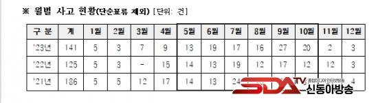 ÃÖ±Ù 3³â°£ ¼ö»ó·¹Àú±â±¸ Ãæµ¹, Àüº¹ µîÀÇ »ç°í´Â ÃÑ 452°ÇÀÌ ¹ß»ýÇÏ¿´À¸¸ç ÀÌÁß ¼º¼ö±âÀÎ 5¿ùºÎÅÍ 10¿ù»çÀÌ 71%ÀÎ 321°ÇÀÌ ¹ß»ýÇß´Ù.