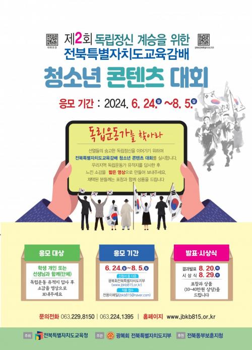 ÃʵîºÎ¡¤Áß°íµîºÎ¡¤´ÜüºÎ µî 3°³ ºÐ¾ß·Î ÁøÇàµÇ¸ç, Âü¿©¸¦ Èñ¸ÁÇϴ û¼Ò³âÀº ±¤º¹È¸ ÀüºÏƯº°ÀÚÄ¡µµÁöºÎ ´©¸®Áý¿¡¼ ½Åû¼, µ¿ÀǼ µîÀ» ÀÛ¼ºÇÑ ÈÄ ÀÛǰ°ú ÇÔ²² ¸ÞÀÏ(jbkb815@naver.com)·Î ½ÅûÇÏ¸é µÈ´Ù.