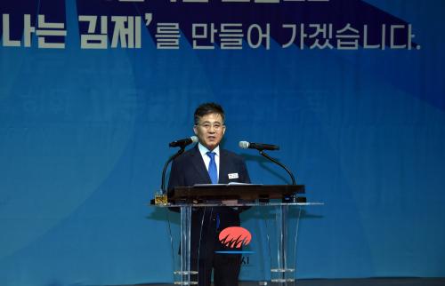 Á¤ ½ÃÀåÀº ¡°¹Î¼±8±â 2ÁÖ³âÀ» ¸ÂÀ¸¸ç ±èÁ¦½ÃÀå ÃëÀӻ縦 ´Ù½Ã ÀÐ¾î ºÃ´Ù. ±×³¯ÀÇ ¶³¸®´ø ¸¶À½ÀÌ, ¹«°Å¿î Ã¥ÀÓ°¨ÀÌ ¾ö¼÷ÇÑ ¾à¼ÓµéÀÌ ´Ù½Ã ¶°¿À¸¥´Ù¡±¸é¼ ¡°ÃÊ½É ÀÒÁö ¾Ê°í ½Ã¹Î°úÀÇ ¾à¼ÓÀ» Áö۱â À§ÇØ ´õ¿í ¿½ÉÈ÷ ¶Ù°Ú´Ù¡±°í ¸»Çß´Ù.
