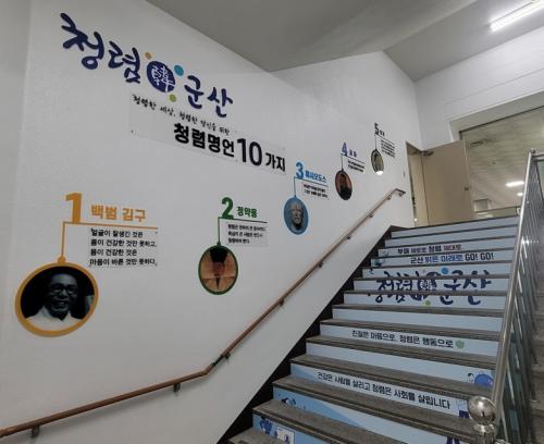 ±º»ê½Ã´Â û»ç Áß¾Ó °è´Ü 1~3Ãþ »çÀÌ¿¡ ¡®°Ç° û·Å °è´Ü¡¯À» Á¶¼ºÇß´Ù. ¡®°Ç° û·Å °è´Ü¡¯¿¡´Â °è´Ü°ú º®¿¡ ÀçÄ¡Àִ û·Å Ç¥¾î¿Í ¼±ÇöµéÀÇ Ã»·Å ¸í¾ð 10°¡Áö¸¦ ¹èÄ¡ÇØ °è´ÜÀ» ¿Ã¶ó°¡´Â ½Ã¹ÎµéÀ̳ª Á÷¿øµéÀÌ ½±°Ô Á¢ÇÒ ¼ö ÀÖµµ·Ï Çß´Ù.