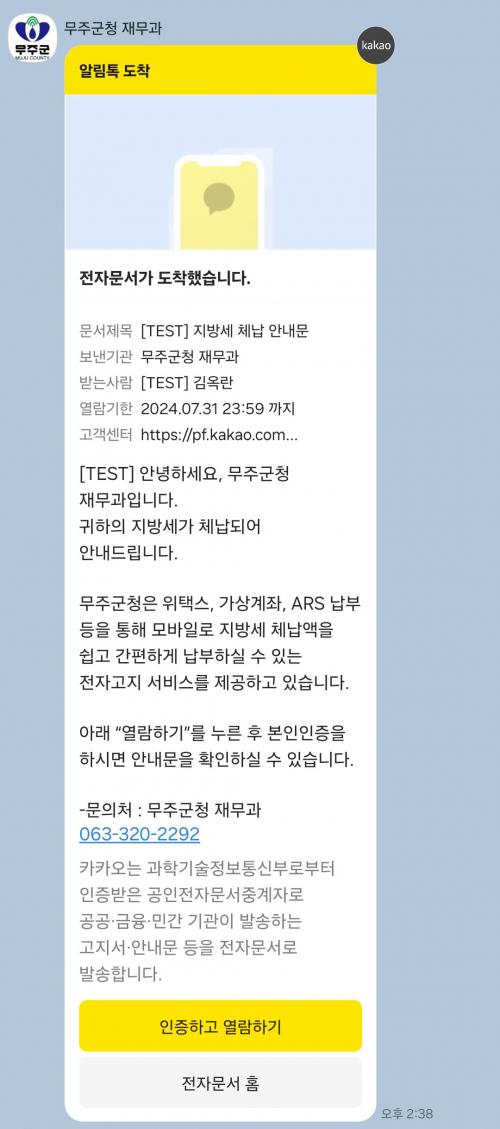 Áö¹æ¼¼ īī¿ÀÅå ¾Ë¸²Àº ¹«ÁÖ±ºÃ» À繫°ú¿¡¼ ü³³ ´ç»çÀÚ¿¡°Ô īī¿ÀÅå ¸Þ½ÃÁö·Î ü³³ ³»¿ªÀ» ¾È³»ÇØ ÁÖ´Â °ÍÀ¸·Î, º»ÀÎ ÀÎÁõÀ» Çϸé À§Åýº¿Í °¡»ó°èÁÂ, ARS ³³ºÎ µîÀ» ÅëÇØ ³³ºÎ±îÁö °¡´ÉÇÑ ¿ø½ºÅé ¼ºñ½º´Ù.